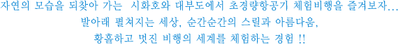 | ¹ß¾Æ·¡ ÆîÃÄÁö´Â ¼¼»ó, ¼ø°£¼ø°£ÀÇ ½º¸±°ú ¾Æ¸§´Ù¿ò, ȲȦÇÏ°í ¸ÚÁø ºñÇàÀÇ ¼¼°è¸¦ üÇèÇÏ´Â °æÇè! |